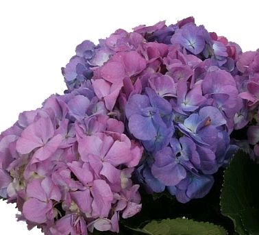 Гортензия крупнолистная зацветает крупными шарообразными соцветиями сиреневого цвета.